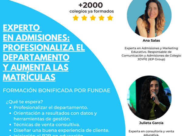 Formación: «Admisiones 360: Profesionaliza tu departamento de admisiones para aumentar las matrículas»