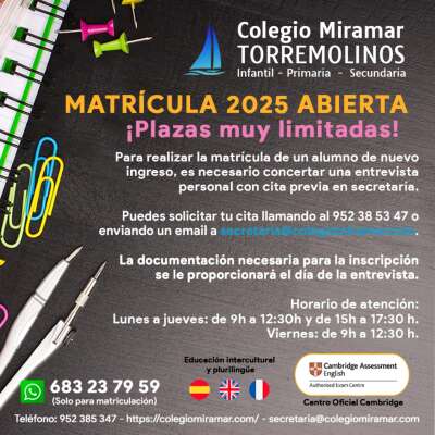 El Colegio Miramar de Torremolinos destaca por su educación personalizada en un ambiente familiar, con formación plurilingüe y excelentes resultados académicos, fomentando valores, respeto y la implicación activa de las familias