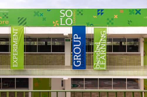Cada campus incluye un Welcome Lobby, salones, laboratorios, patios centrales y áreas deportivas y creativas.